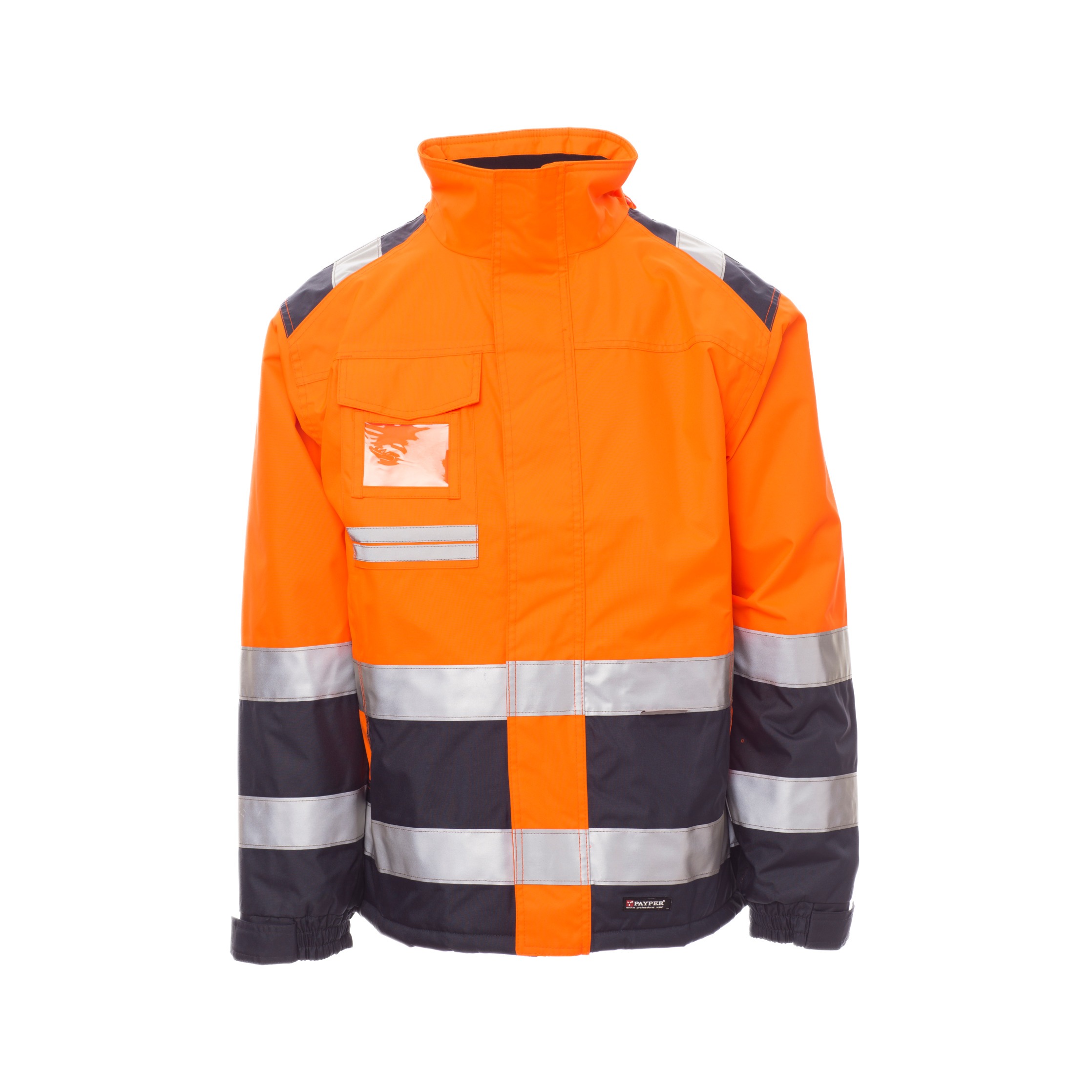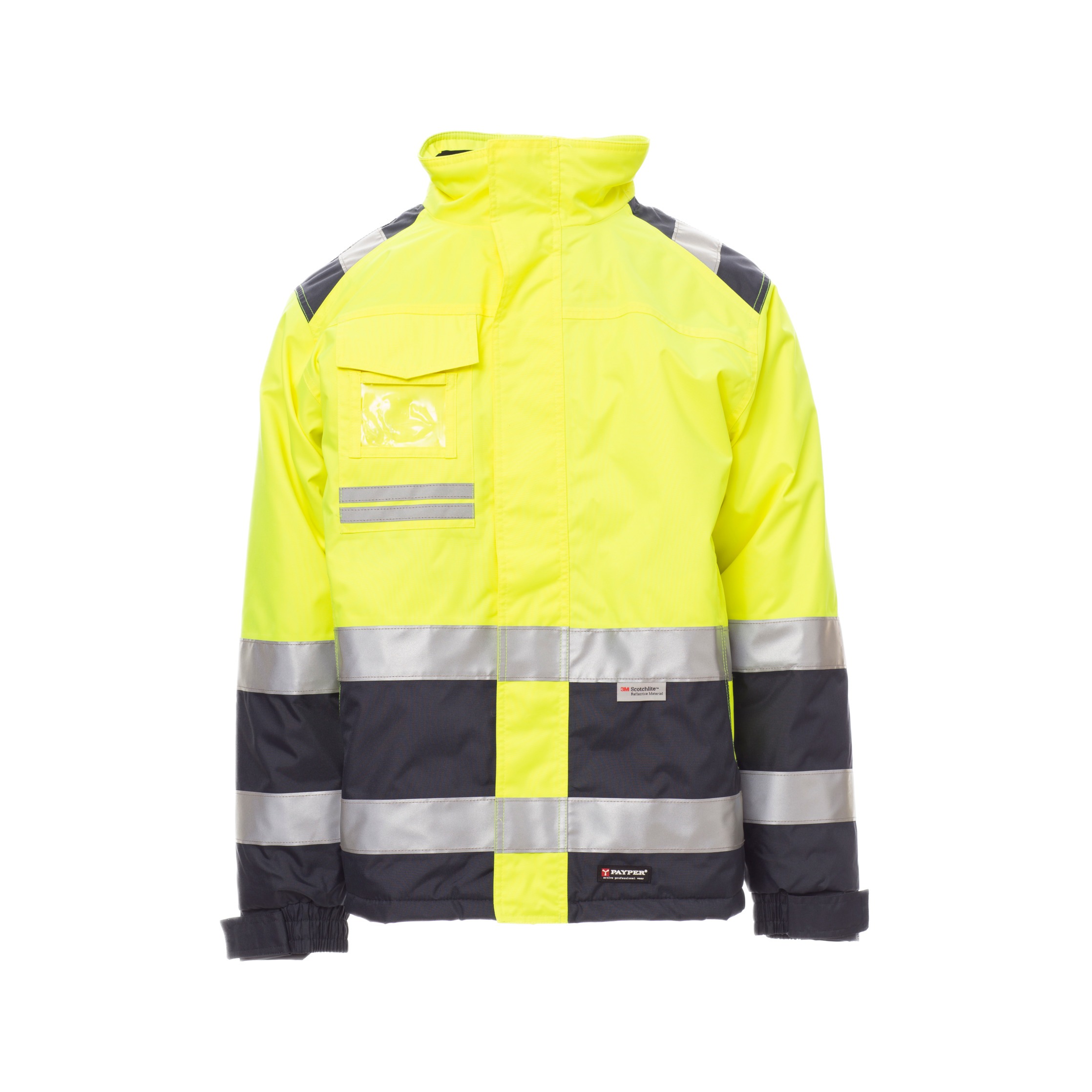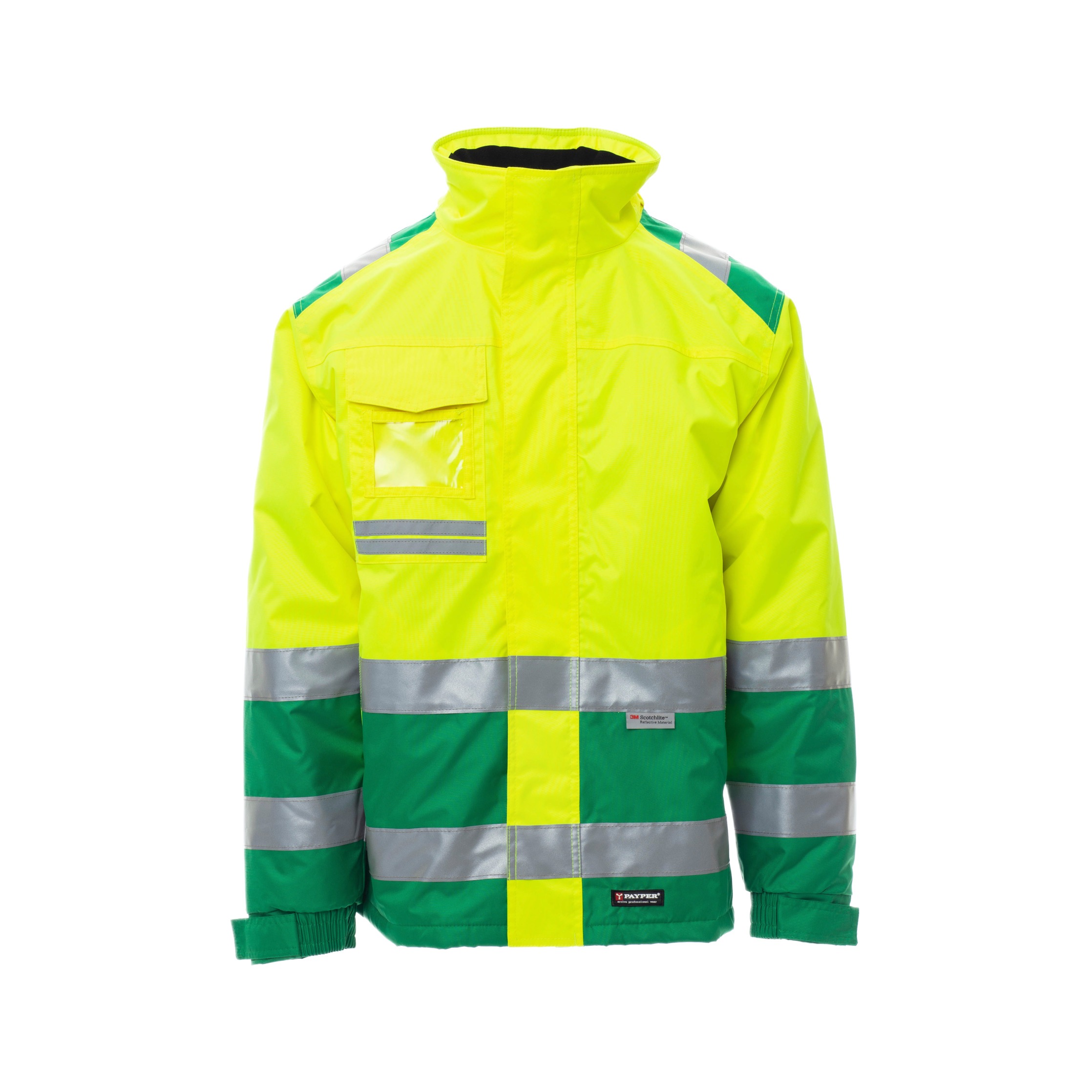 Die umlaufenden Reflexstreifen erfüllen die Anforderungen der EN ISO 20471 Klasse 2, die internationale Norm für Warnschutzkleidung. Diese Norm garantiert, dass die Jacke durch fluoreszierendes Material und reflektierende Elemente auch bei schlechten Lichtverhältnissen gut sichtbar bleibt. Zusätzlich ist die Jacke nach CE Reg UE 2016/425 – Kategorie II zertifiziert und entspricht den europäischen Vorgaben für persönliche Schutzausrüstung.
