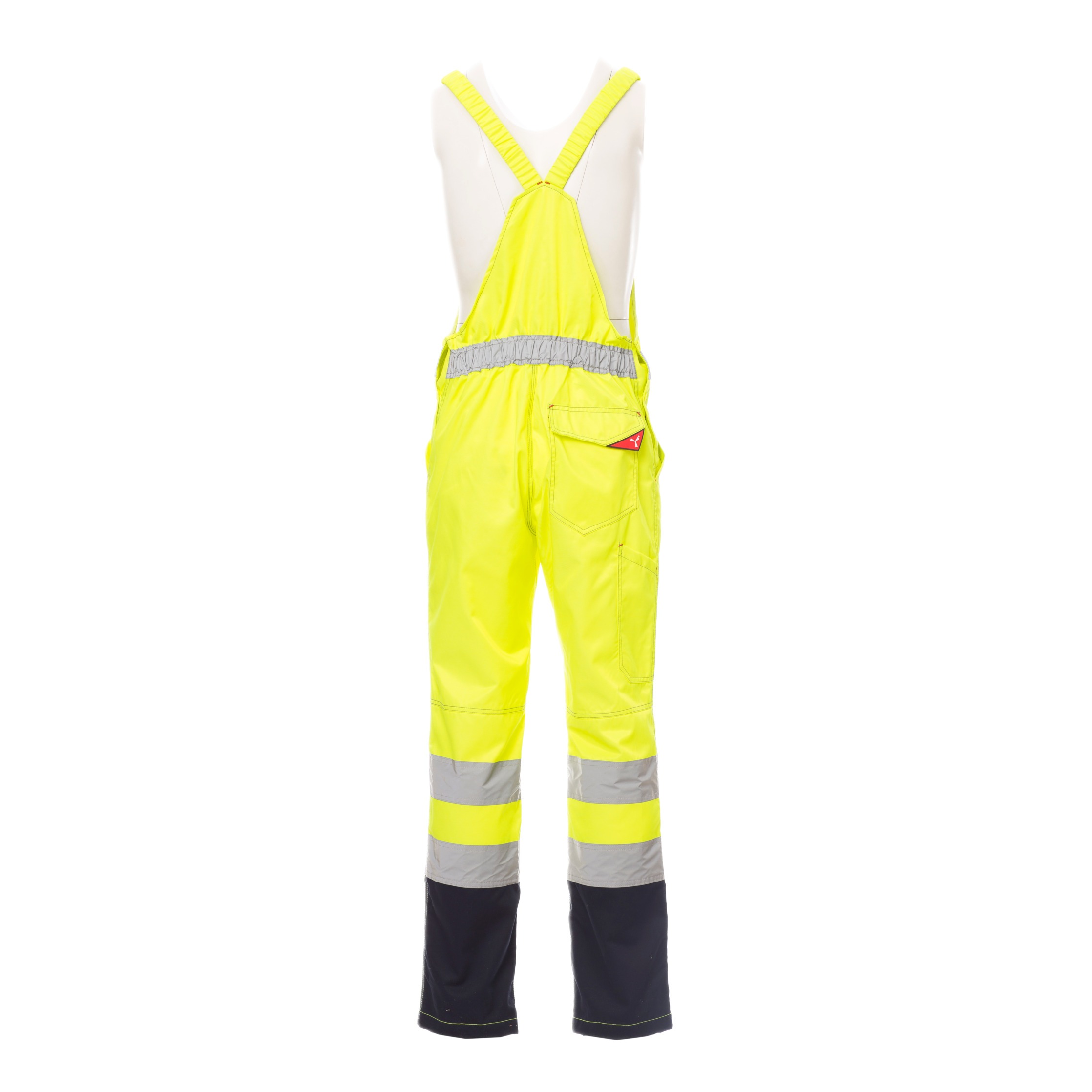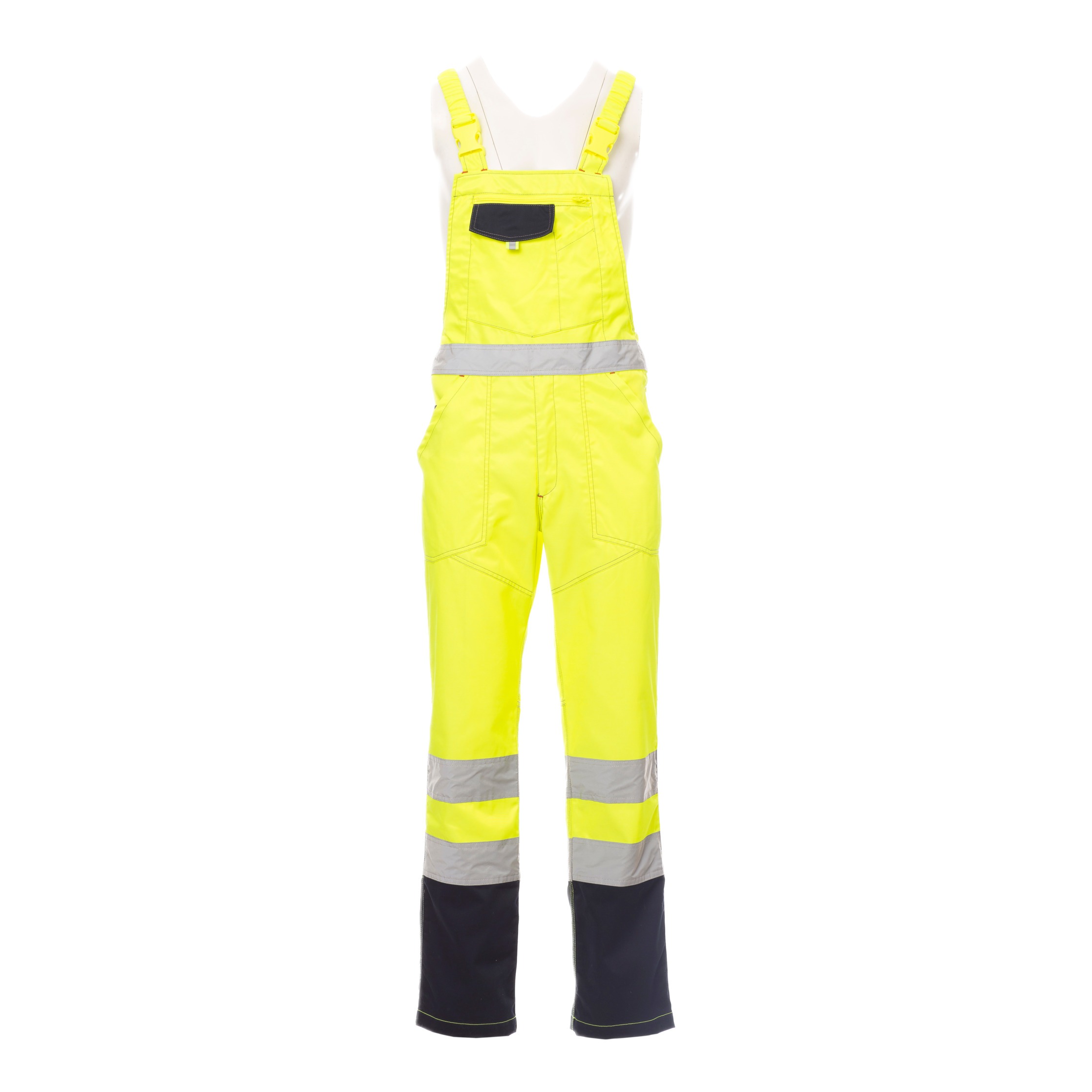 Die Hose ist nach EN ISO 20471 Klasse 2 zertifiziert. Diese Norm beschreibt Warnschutzkleidung, die durch fluoreszierende Materialien und retroreflektierende Streifen für eine erhöhte Sichtbarkeit sorgt. In Kombination mit der CE Reg UE 2016/425 – Kategorie II Zertifizierung entspricht die Latzhose den europäischen Vorgaben für persönliche Schutzausrüstung.