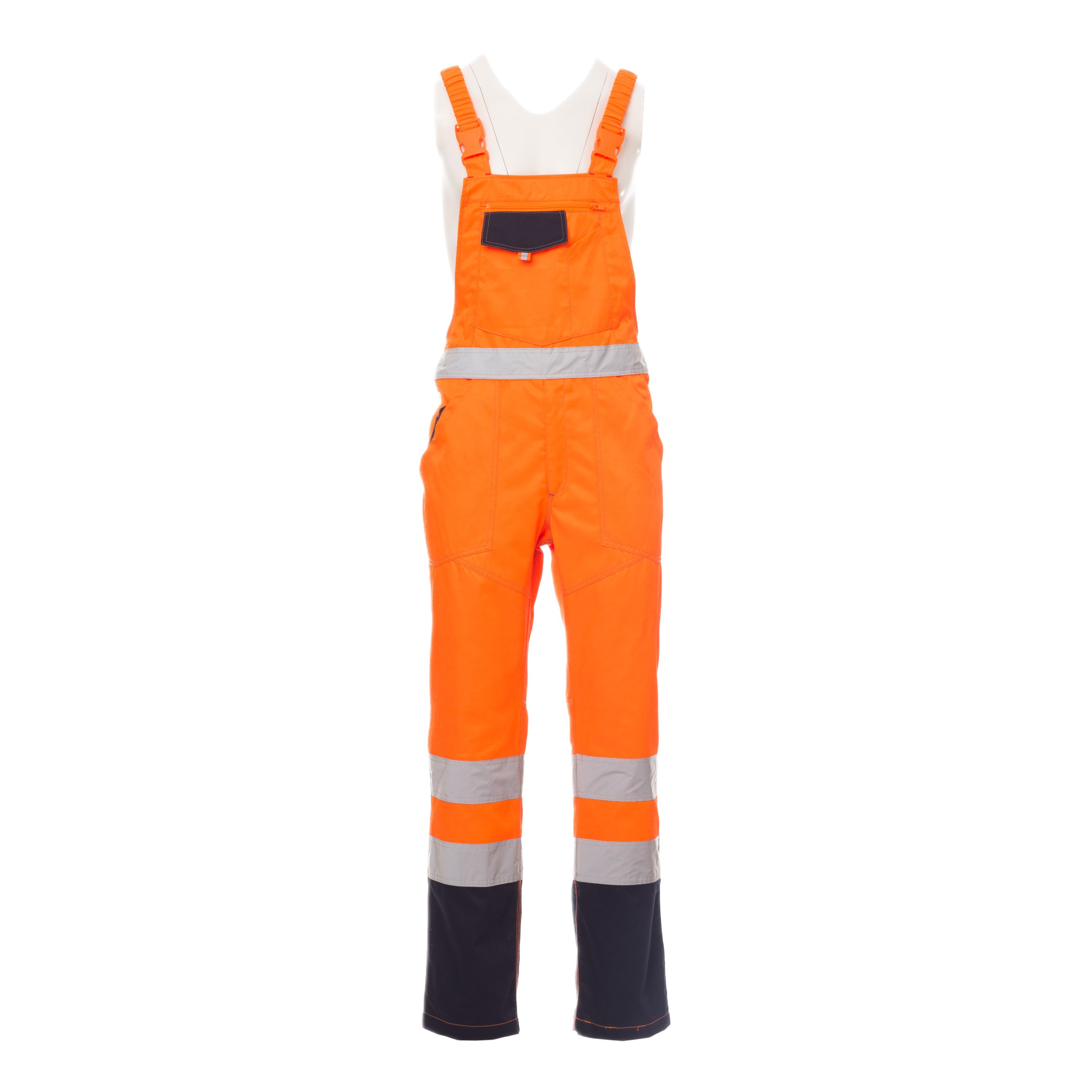 Die Herren Warnschutz Latzhose Skill kombiniert zuverlässige Sicherheit mit hoher Funktionalität und bequemer Passform. Dank der auffälligen Farbkombination in Fluogelb/Marineblau oder Fluoorange/Marineblau sowie umlaufenden Reflexstreifen bietet sie optimale Sichtbarkeit bei allen Lichtverhältnissen – ob auf der Baustelle, in der Industrie oder im Außendienst.