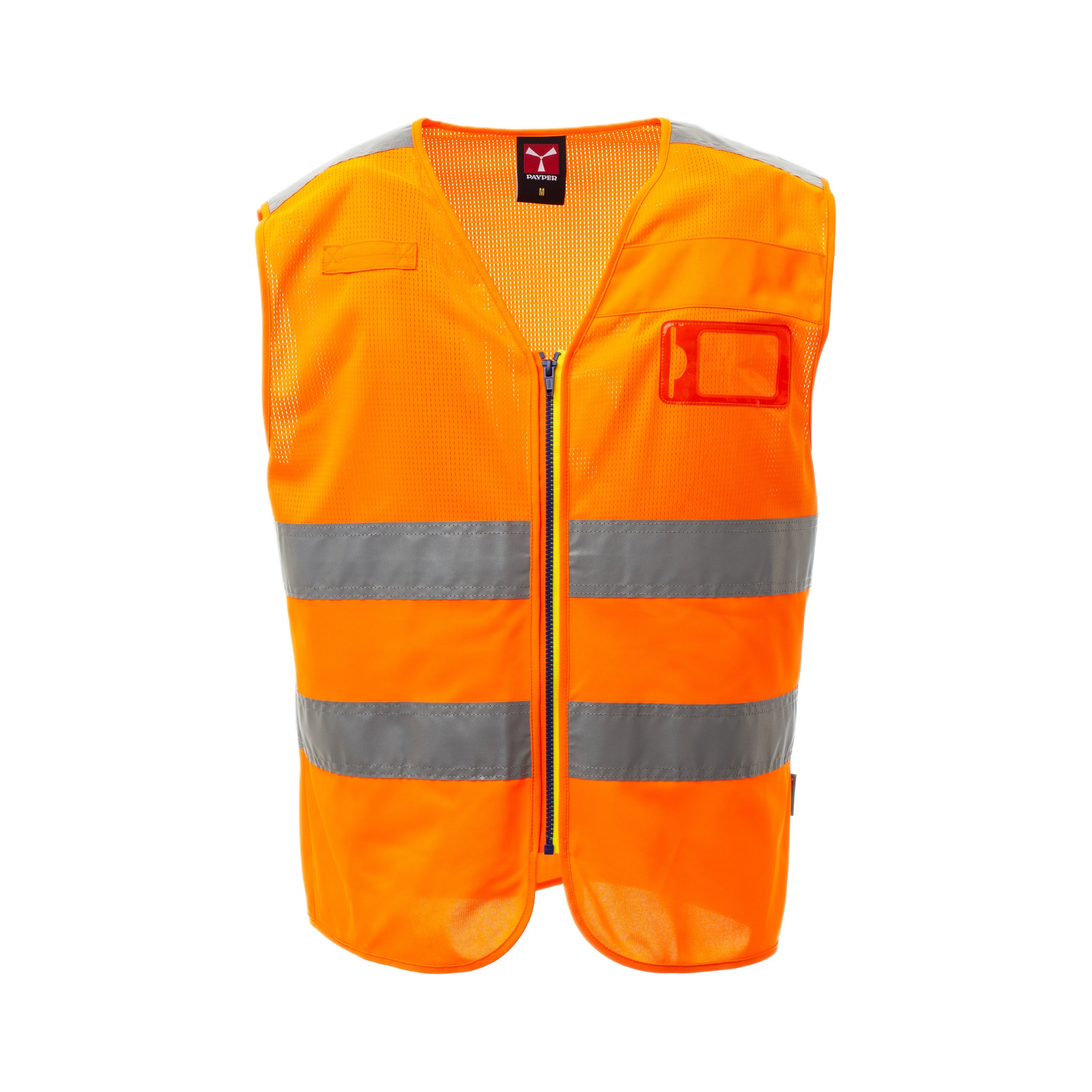 Dank der retroreflektierenden Reflexstreifen an Schulter und Körper bietet die Weste hervorragende Sichtbarkeit bei Tag und Nacht. Sie entspricht den Normen EN ISO 20471 Cl.2 HV, RIS-3279-TOM sowie CE Reg. UE 2016/425 – II° und ist damit bestens geeignet als professionelle Arbeitskleidung.