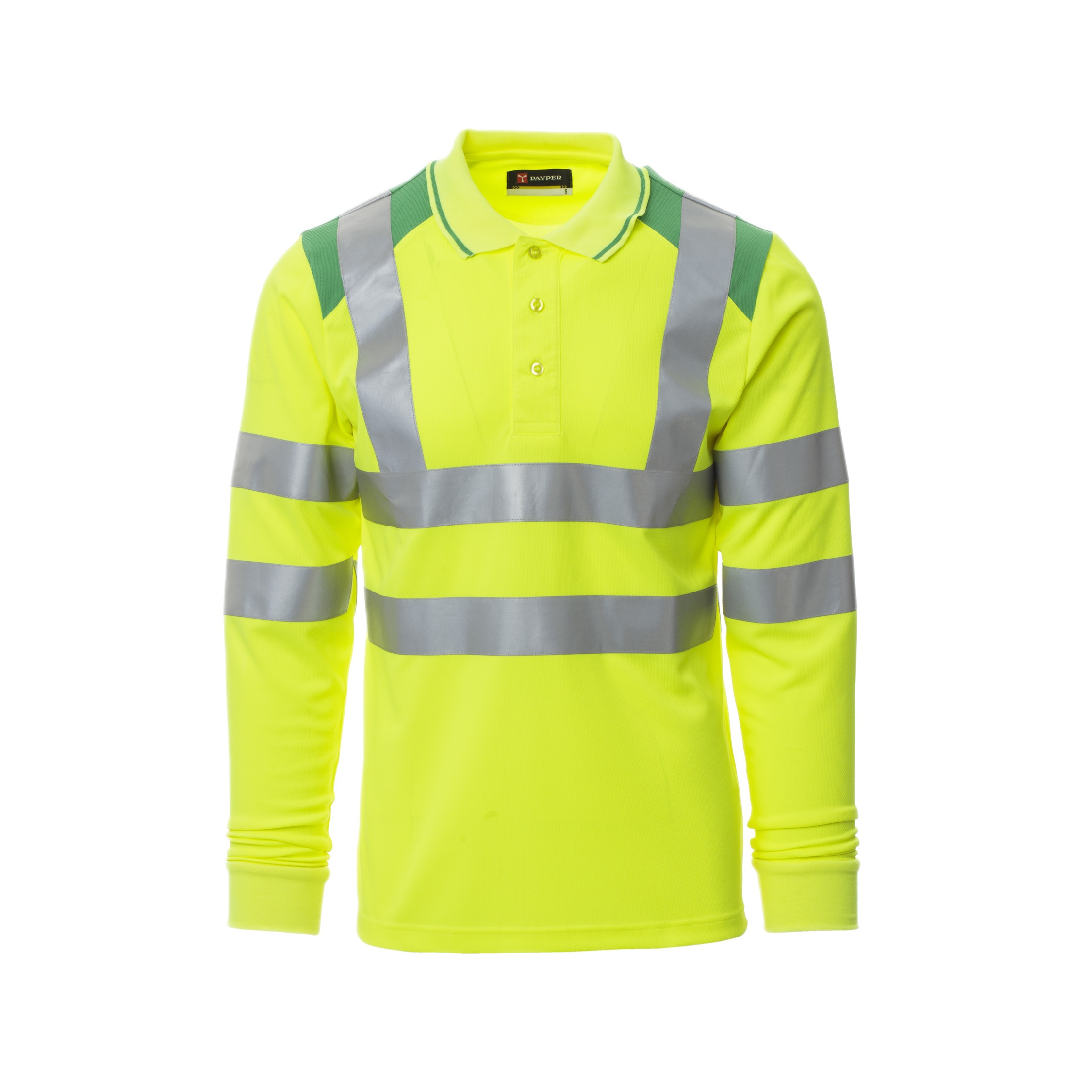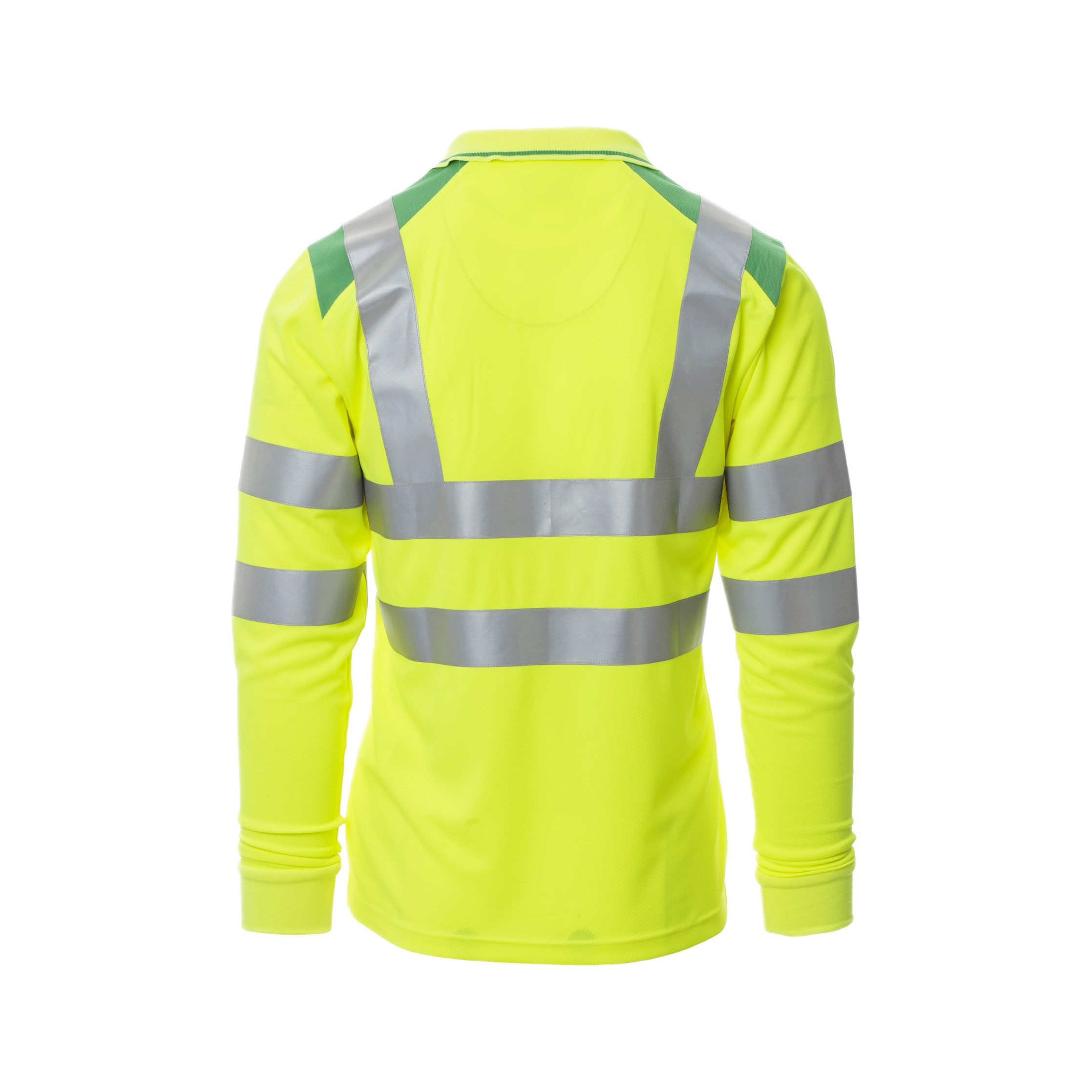 Das zweifarbige Design mit Reflexstreifen gewährleistet optimale Sichtbarkeit bei Tag und Nacht. Die drei Knöpfe in Ton-in-Ton mit Perlmutteffekt verleihen dem Poloshirt eine hochwertige Optik. Der Kragen und die Ärmelränder aus Feinripp mit feinem Profil in Kontrastfarbe unterstreichen die professionelle Ausstrahlung.